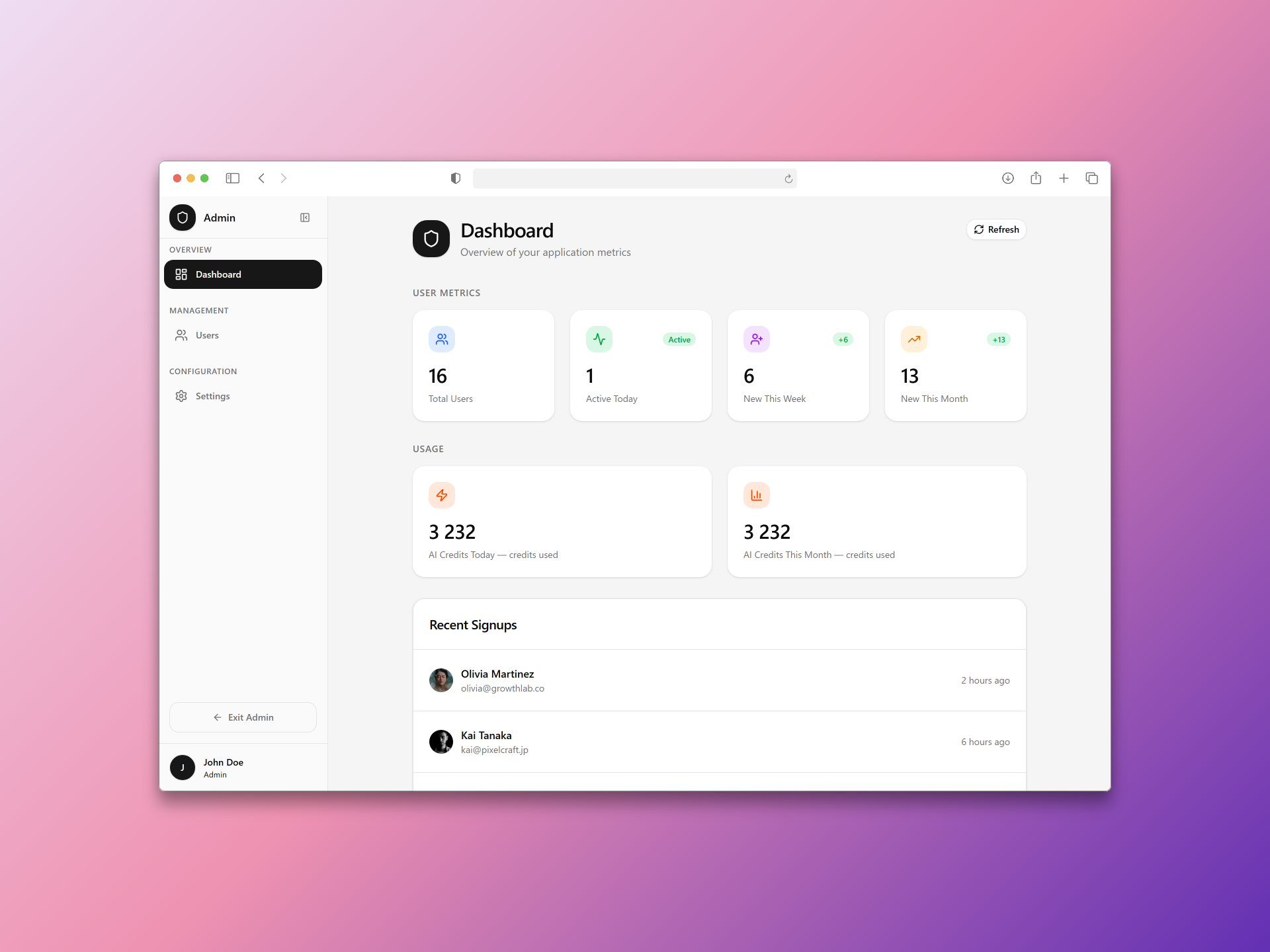 Complete authentication with Google, GitHub, Magic Links, and 2FA.